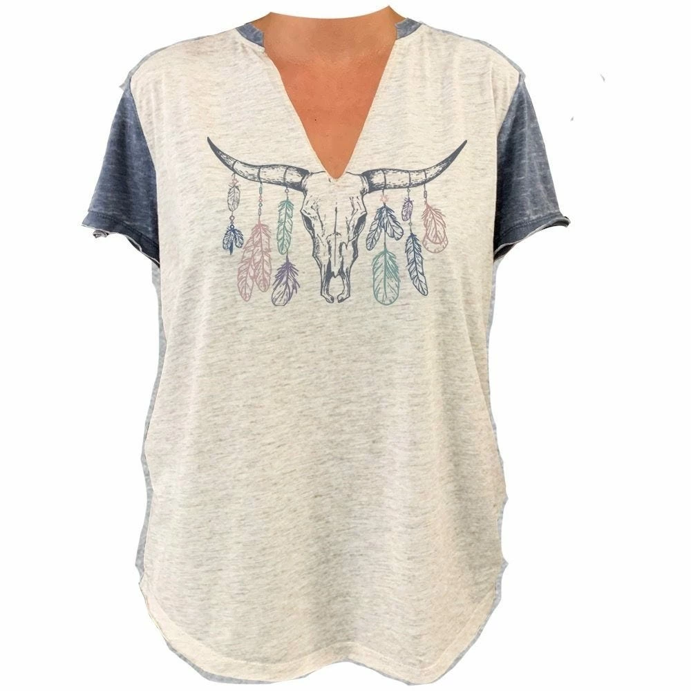 Lincoln Outfitters Ladies V-Neck BOHO Antler Short Sleeve Fashion T-Shirt –Β LO-LF12